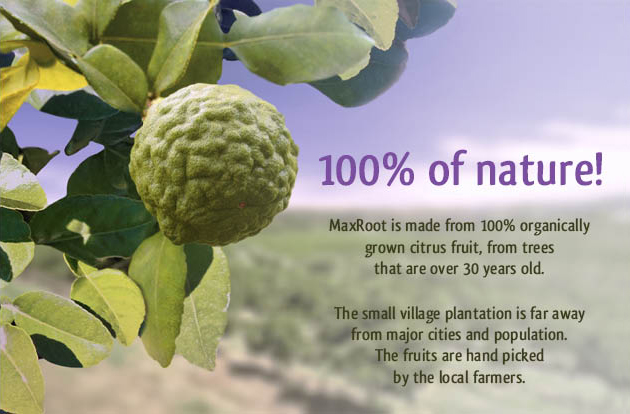 The MaxRoot Fruit extract has been used since old age in the northern parts of Thailand in a particular and secret way of preparation to maintain health and beauty of the Siam people’s shiny hair. The type of fruit used is know in Asia as Makroot fruit, and in other parts of the world as Kaffir Lime. The scientific name is Citrus Histrix. Makroot leaves are also used as a main ingredients for Tom Yang Kung, a traditional Thai dish. The pealing of the fruit has been used in massage oils.